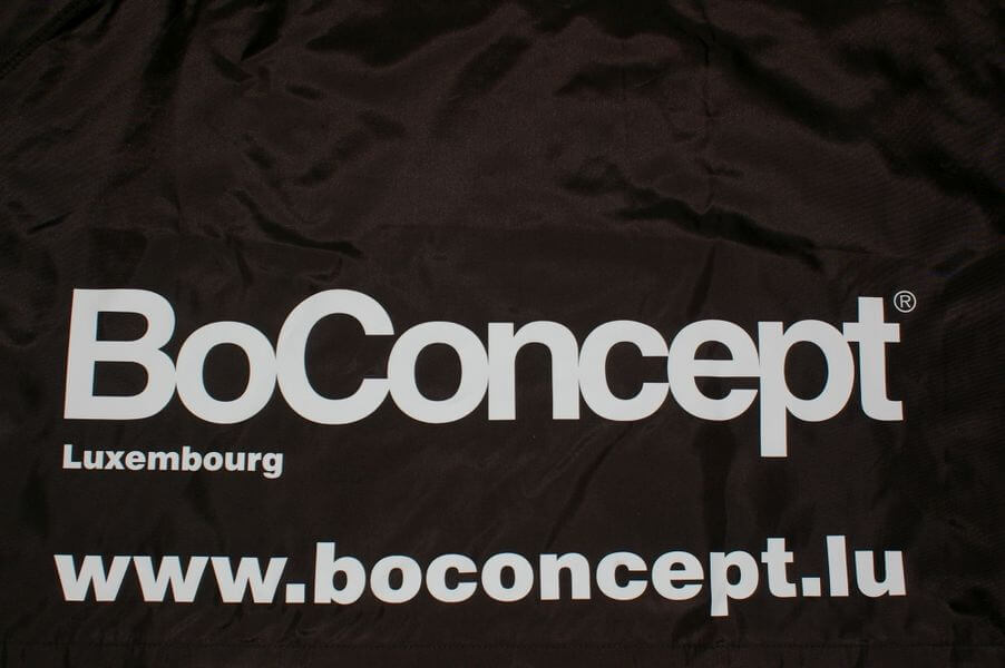 - Brandings im Flexdruck = penibelscharf, millimetergenau, knitterfest, langlebig