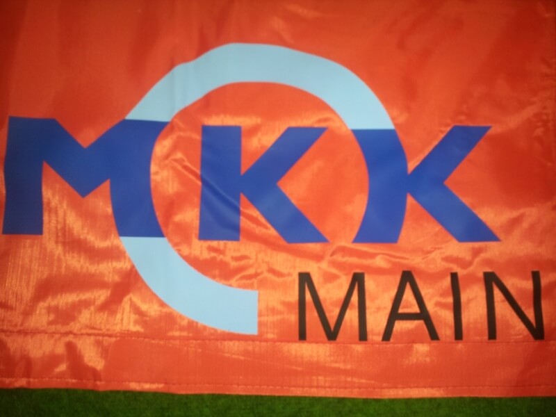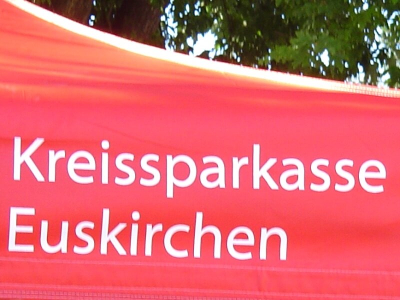 Werbeaufdrucke auf dem Volant sind aus mittlerer Entfernung bestens zu erkennen.