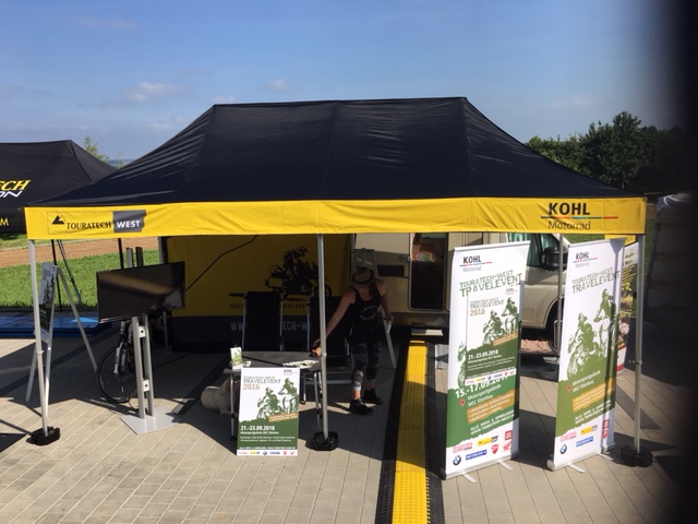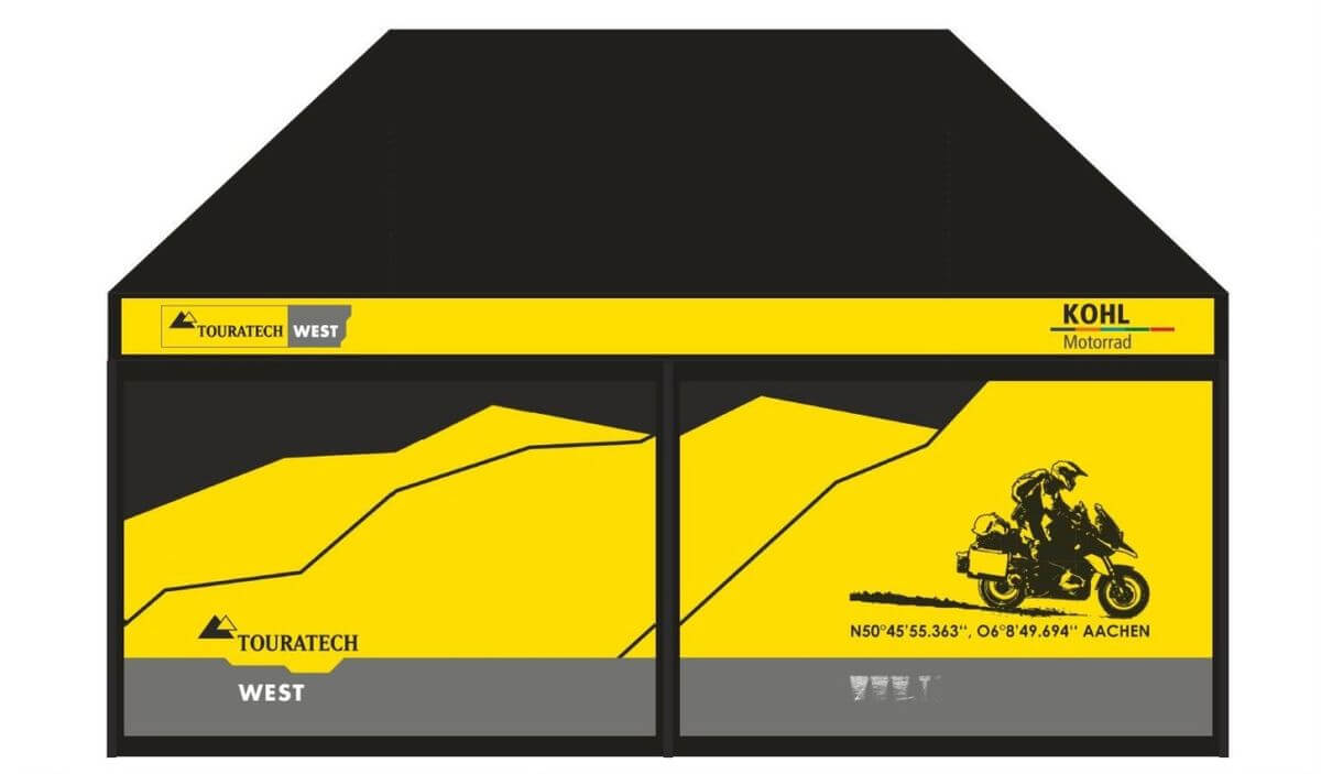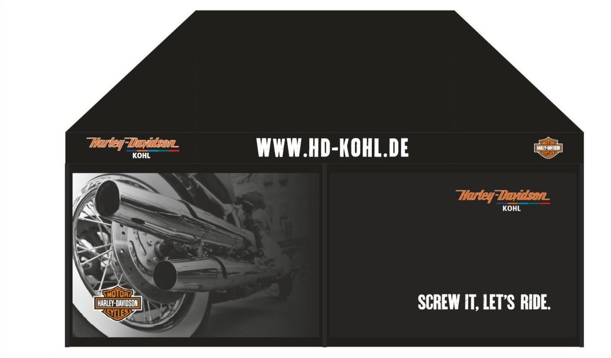 Die Firma KOHL automobile GmbH nutzt ihr 6x3m Faltpavillon unserer ALU-HEXAGON-Serie zum einen als Harley-Davidson-Promotionzelt und zum anderen als TOURATECH-Partner-Faltpavillon.