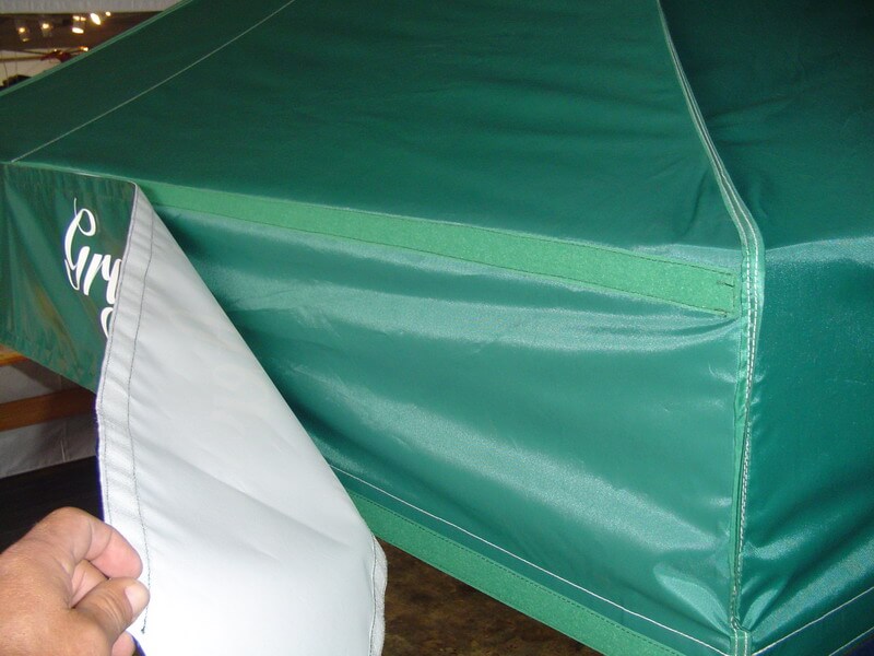Das Druckmedium wird dann final auf Ihr Pavillon-Dach oder vollflächig auf eine Seitenwand genäht und anschließend die Nähte wasserdicht versiegelt.