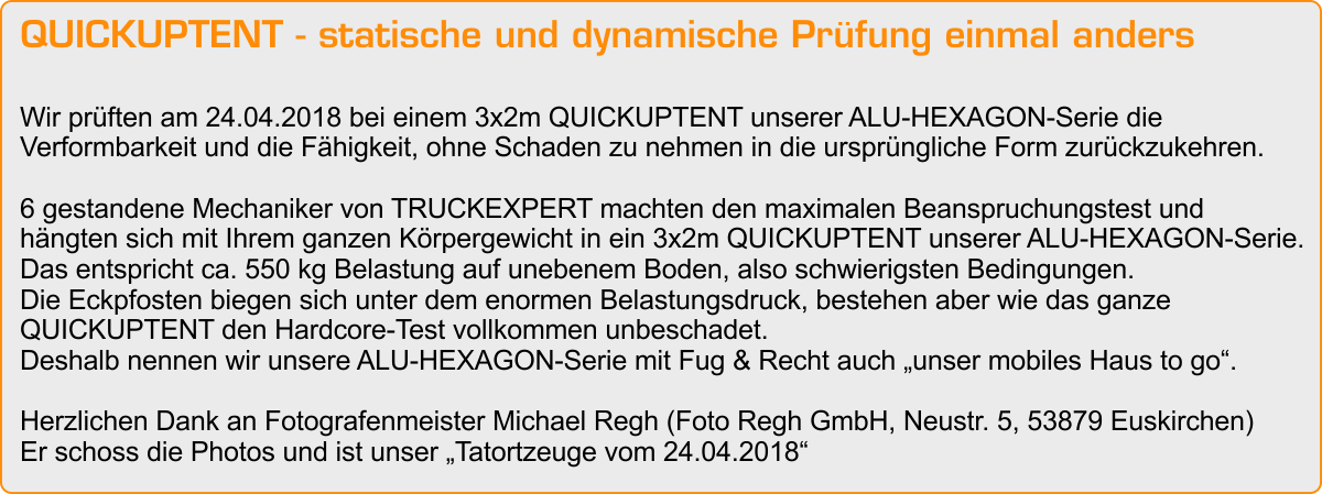 Das ist nachweislich unser weltweites Alleinstellungsmerkmal bei Faltzelt-Aluminium-Rahmen.