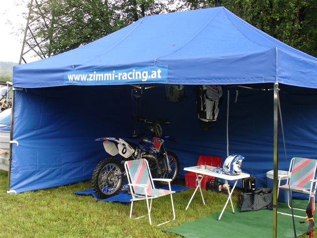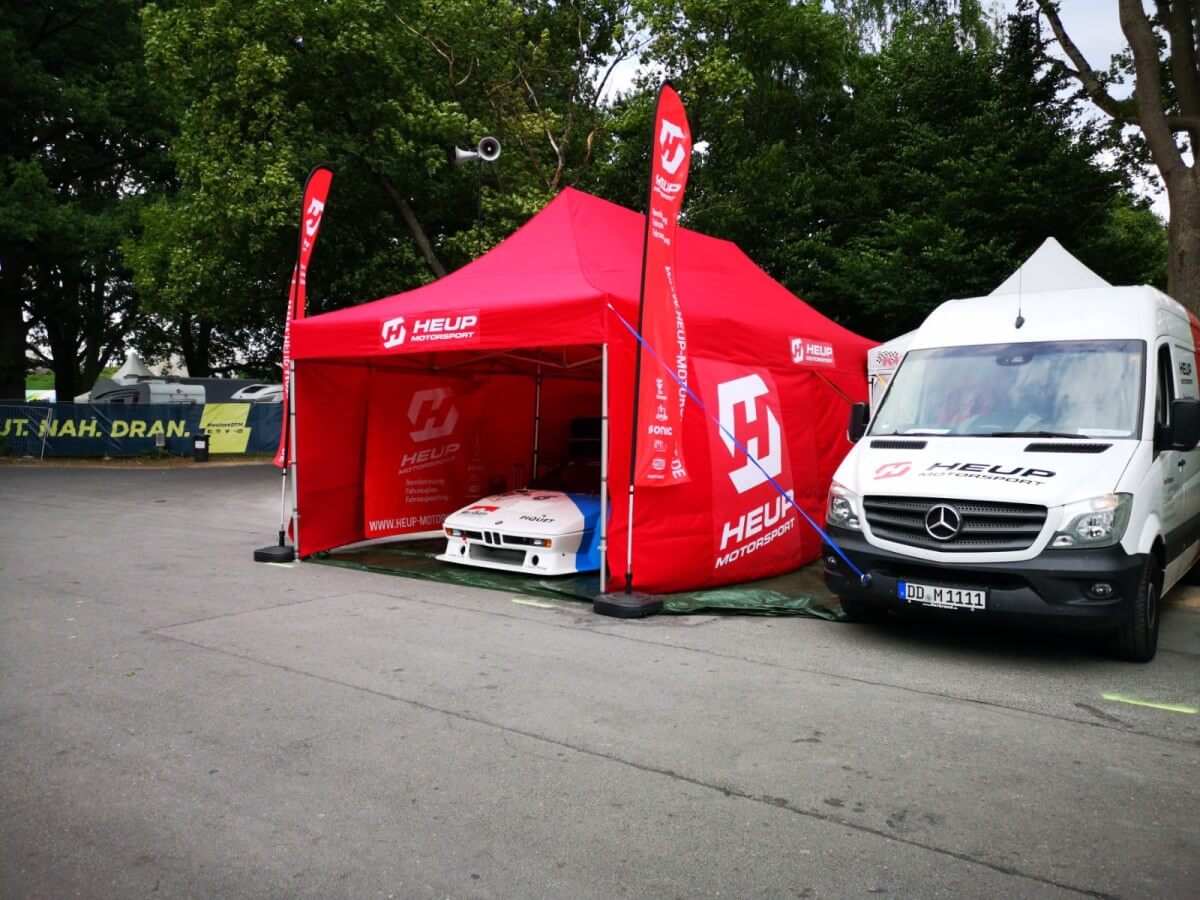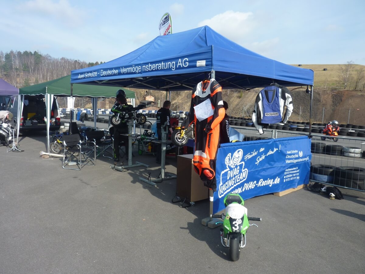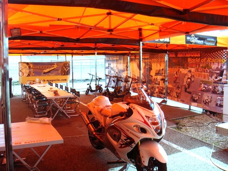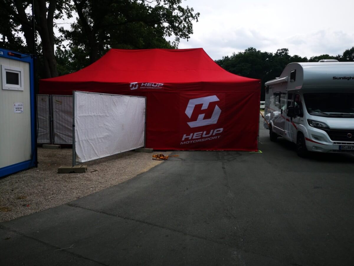 Sponsoren freuen sich, wenn Sie an der Rennstrecke Ihr Firmenemblem nicht nur auf Car oder Bike als kleinen Aufkleber, sondern Ihre Werbung großflächig als hochwertige werbliche Gestaltung im Fahrerlager auf dem Racezelt wiederfinden können.
