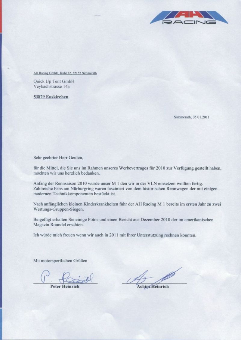 QUICKUPTENT als Sponsor des AH Racing Team in der Rennsaison 2010