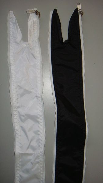Sie werden durch Reißverschlüsse mit den anschließenden Seitenteilen verbunden.