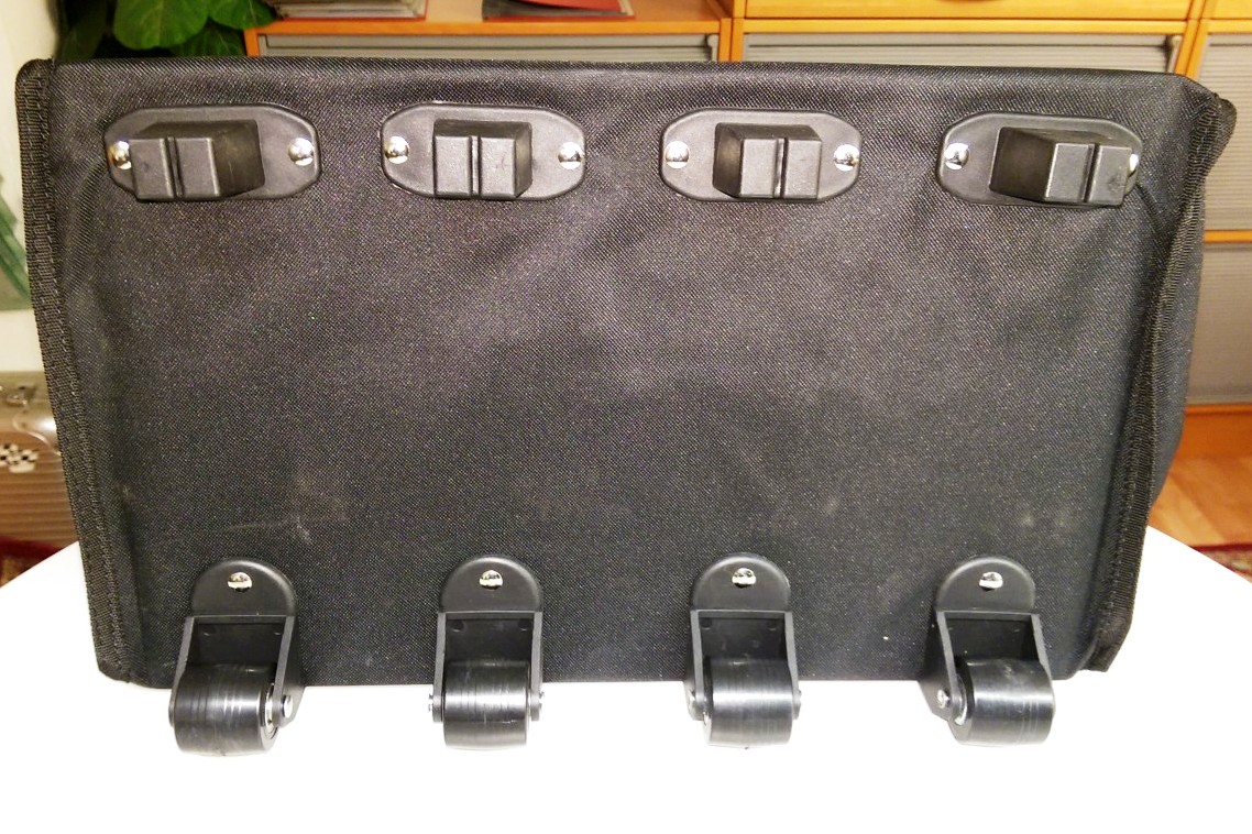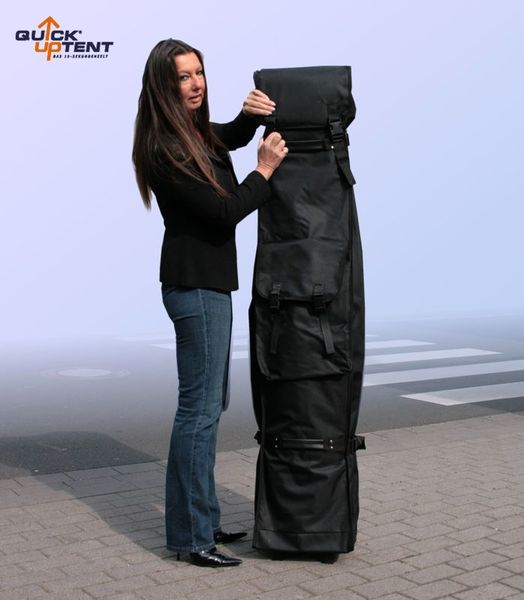 Die Transporttasche ist aus hochwertigem Leinenstoff mit Schaumgummieinlagen gefertigt. Sie hat ein separates Fach zur Verstauung der Seitenwände und zwei große Trageriemen, damit Sie das komplette QUICKUPTENT-Faltpavillon-Set bequem und sicher transportieren können. Und das jetzt auch auf 2-4 (je nach Größe) leichtlaufenden Rollen.